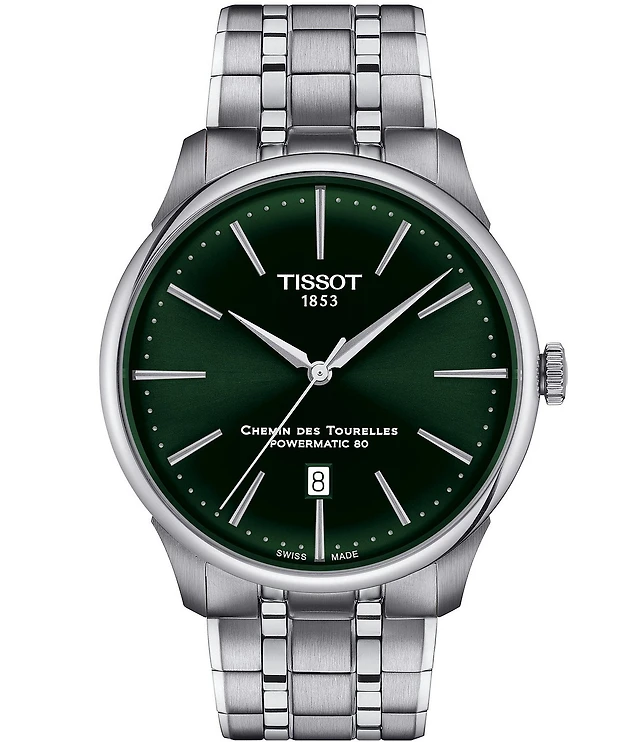 Tissot Men's Chemin Des Tourelles Powermatic 80 Automatic Green Dial Stainless Steel Bracelet Watch