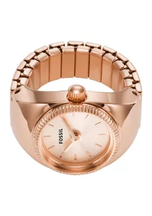 Fossil Women's Raquel Two-Hand Rose Gold-Tone Stainless Steel Ring Watch 14mm