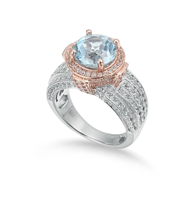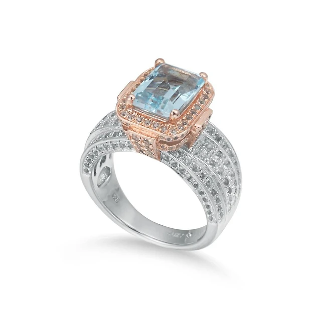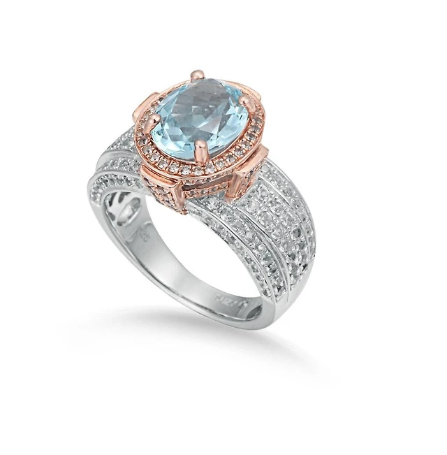 Suzy Levian New York Suzy Levian Two Tone Sterling Silver Cushion Cut Center Topaz Cocktail Paris Ring