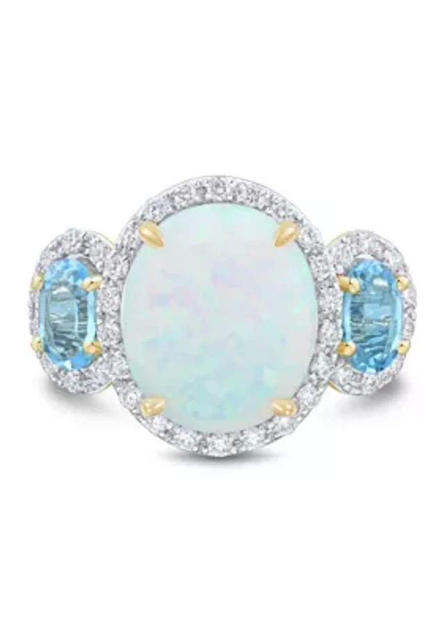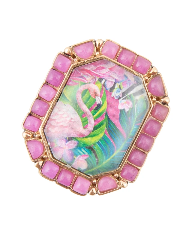 Barse Scenic Red Floral Blue Apatite Golden Statement Ring