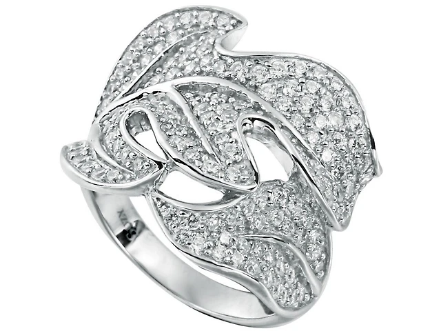 Suzy Levian Sterling Silver Cubic Zirconia Double Layer Open Web Ring