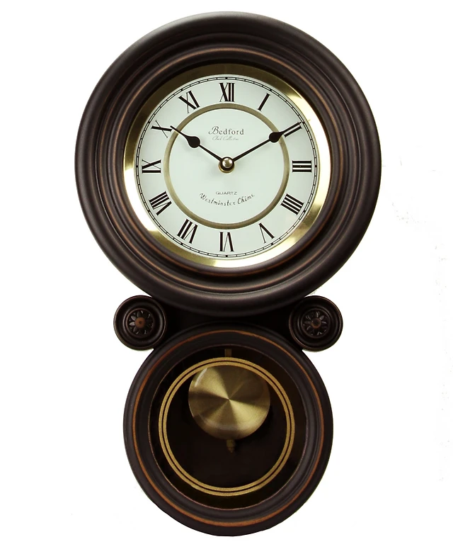 Bedford Clock Collection Contemporary Round Wall Clock with Pendulum