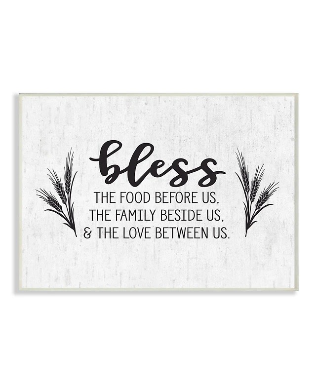 Stupell Industries Home Decor Collection Bless The Food and Family with Wheat Subtle Birch Typography Wall Plaque Art 12.5" L x 0.5" W x 18.5" H