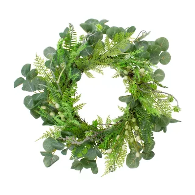 Nearly Natural 20in. Cedar; Antlers; Lily And Ruscus With Berries Artificial Wreath Wreath