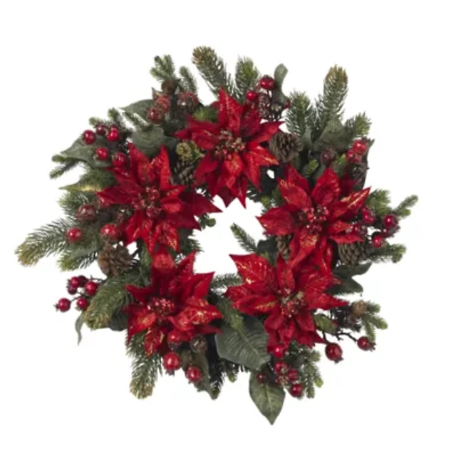 Nearly Natural 5ft. Flocked Faux Pre-Lit Wreath