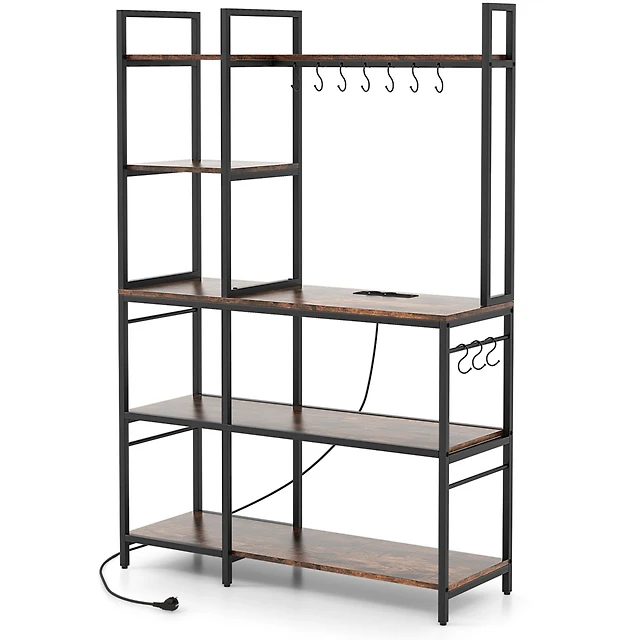 Kings Brand Furniture 5-Tier Standing Kitchen Bakers Rack for with Storage Microwave Stand, Metal Frame with Marble Finish - Black