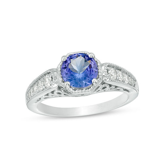 Previously Owned - Vera Wang Love Collection 1/2 CT. T.w. Diamond and Blue Sapphire Curlique Band in 14K White Gold