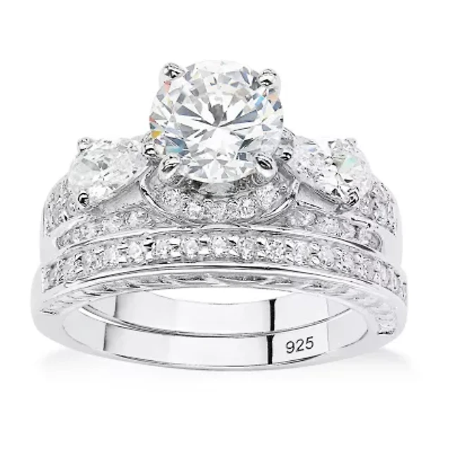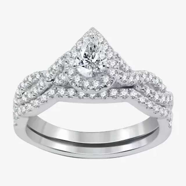 Signature By Modern Bride (H-I / Si1-Si2) Womens CT. T.W. Lab Grown White Diamond 10K Gold Pear Side Stone Halo Bridal Set