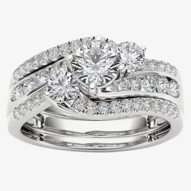 Signature By Modern Bride (H-I / Si1-Si2) Womens 1 1/5 CT. T.W. Lab Grown White Diamond 10K Gold Round Side Stone Halo Bridal Set