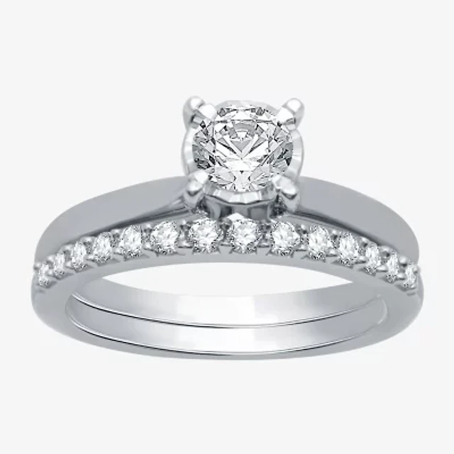 Signature By Modern Bride (G / Si1 - Si2) Womens 1 1/2 CT. T.W. Lab Grown White Diamond 10K Gold Side Stone Halo Bridal Set