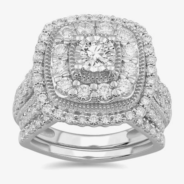 DiamonArt® Womens 2 1/3 CT. T.W. White Cubic Zirconia 14K Gold Over Silver Square Bridal Set