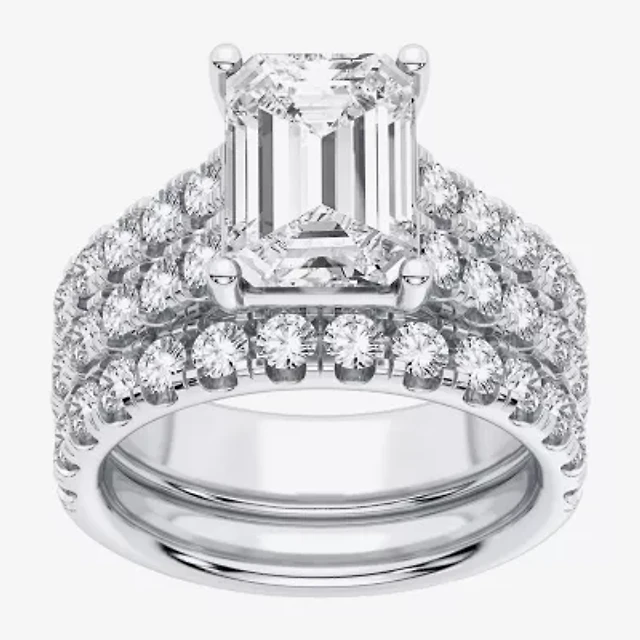 DiamonArt® Womens 3 1/2 CT. T.W White Cubic Zirconia Platinum Over Silver Square Bridal Set