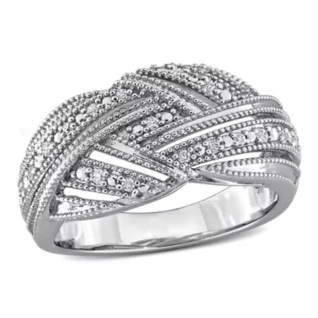 1/3 CT. T.w. Baguette and Round Diamond Alternating Multi-Row Ring in Sterling Silver