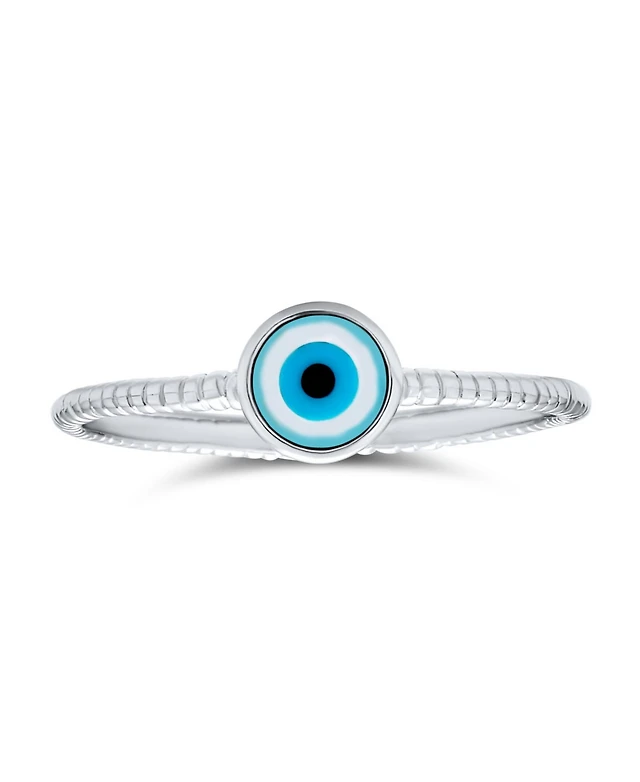 Bling Jewelry Minimalist Sterling Silver Ring with Evil Eye Design Stackable Midi Knuckle Band