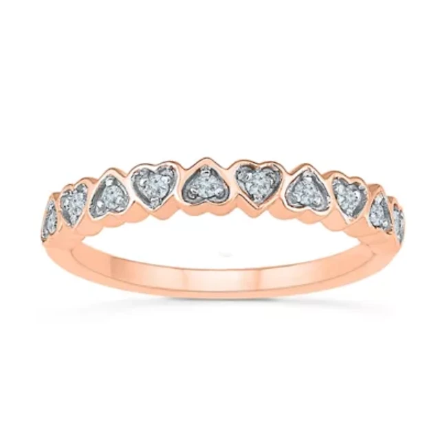 Womens 2MM 1/ CT. T.W. Natural White Diamond 10K Gold Heart Band