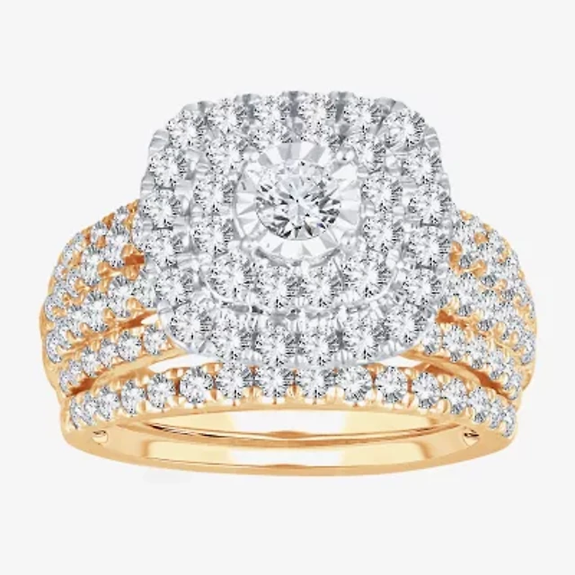 Womens / CT. T.W. Natural White Diamond 10K Gold Cushion Halo Bridal Set