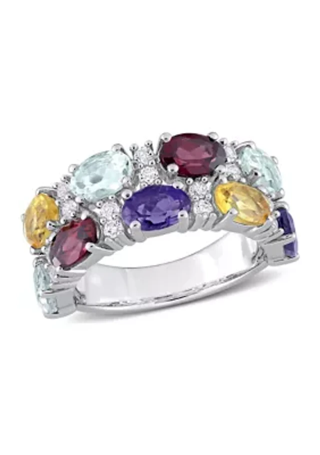 Amethyst & White Topaz Ring Rose Plated Sterling Silver