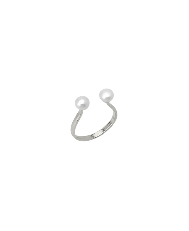 8.0mm Freshwater Cultured Pearl and Lab-Created White Sapphire Swirl Bypass Ring in 10K Rose Gold