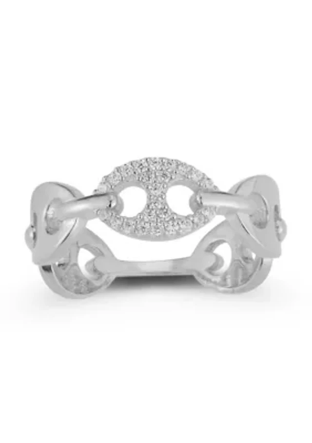 Rachel Glauber Men's Clear Cubic Zirconia Sleek Adjustable Band Ring