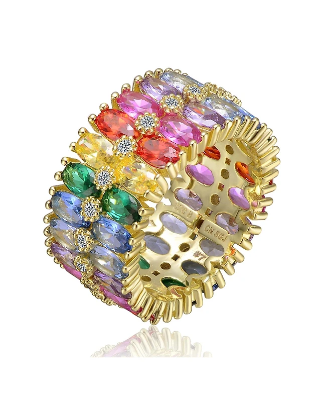 Sterling Silver 14k Gold Plated Cubic Zirconia Pave Bezel Ring