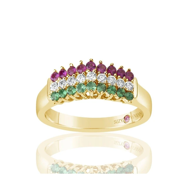 Macy's Onyx (3.05 ct. t.w.) Alternating Row Band Ring 14k Yellow Gold Over Sterling Silver