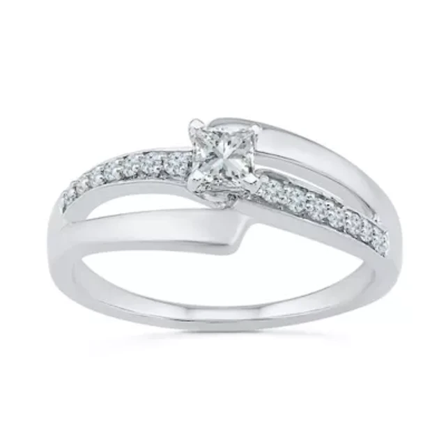Promise My Love Womens Diamond Accent Natural White Sterling Silver Round Crossover Side Stone Ring