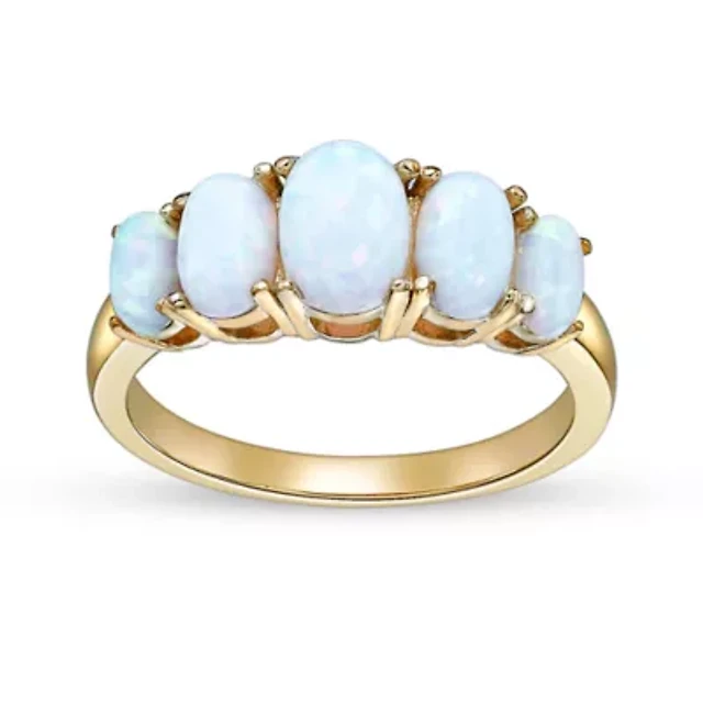 Lab Created 1.32 ct. t.w. Opal Five Stone Ring 2 Micron 18k Gold Plated Silver