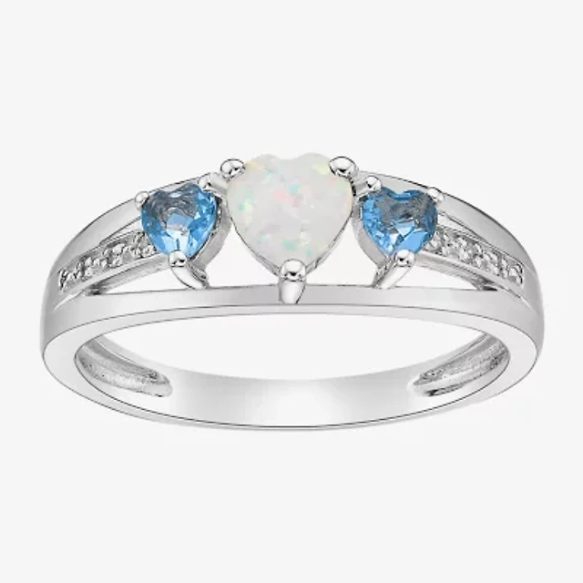Womens Diamond Accent Lab Created White Opal Sterling Silver 3-Stone Side Stone Cocktail Ring