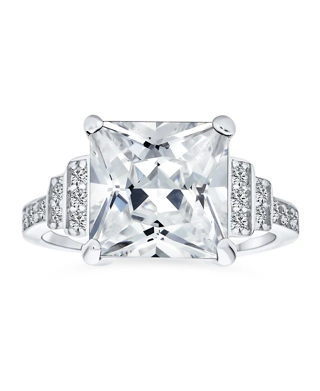 Bling Jewelry Sterling Silver Art Deco Style 5CTW Blue Princess Cut Cz Statement Ring with Stepped Side Stones