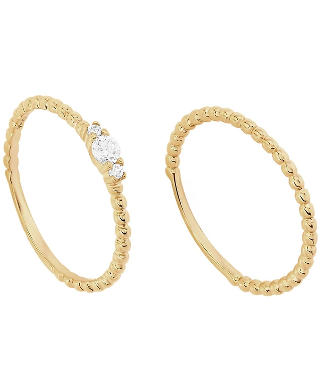 GiGiGirl Kids/Teens 14k Yellow Gold Plated with Cubic Zirconia Pink Enamel Heart Stacking Ring