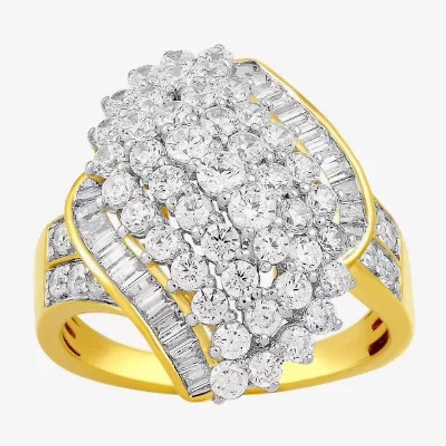 (I / Si2) Womens 2 1/4 CT. T.W. Lab Grown White Diamond 10K Gold Round Side Stone Engagement Ring