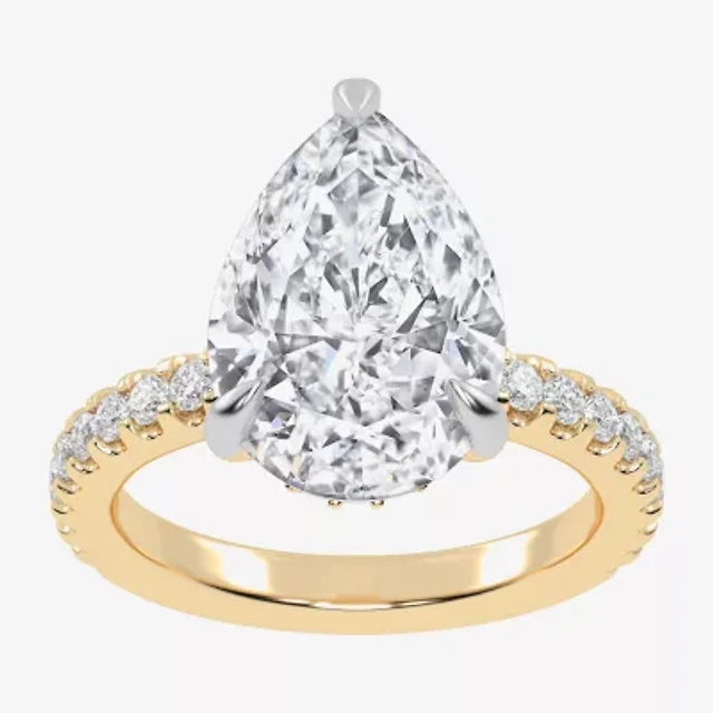 (F / Si2) Womens 2 CT. T.W. Lab Grown White Diamond 10K Gold Pear Side Stone Engagement Ring