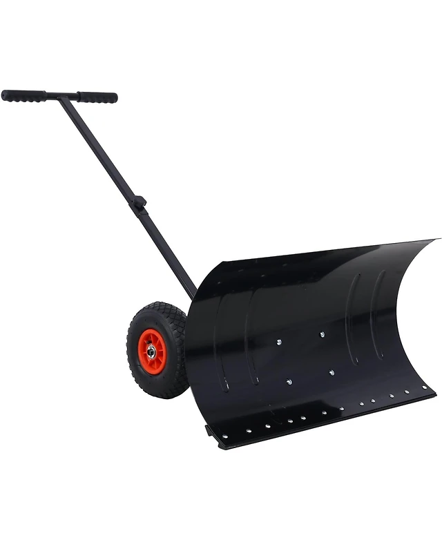 Snow Shovel with Wheels, Snow Pusher, Cushioned Adjustable Angle Handle Snow Removal Tool, 29" Blade, 10" Wheels,black color