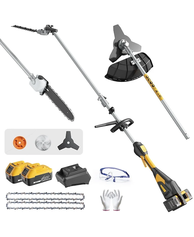 4-in-1 40V Max Power Cordless Electric Brush Cutter, String Trimmer, Pole Saw & Hedge Trimmer with 2× 4.0Amh Batteries and Charger