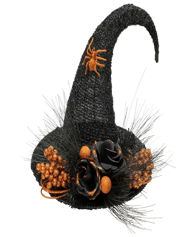 16" Tinsel Witch's Hat with Glittered Roses Halloween Decoration