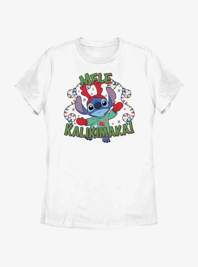 Disney Lilo & Stitch Mele Kalikimaka Merry Christmas Hawaiian Womens T-Shirt
