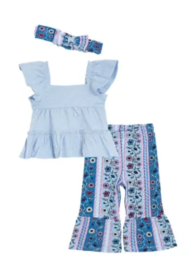 Baby Girls Bohemian Top and Printed Pants Set with Headband