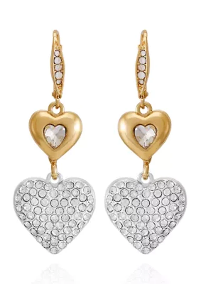 Two Tone Drop Heart Earrings