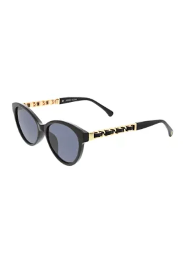 Slim Cat Eye Sunglasses with Braided Chain Link Metal Temples