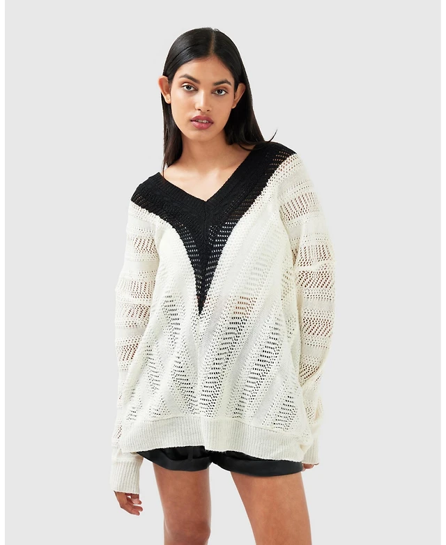 Kenneth Cole Women's Two Tone Open Stitch Pull-On Top
