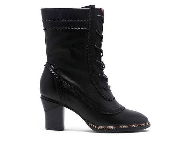 L'Artiste Women's Avyanna Velvet and Leather Ankle Boots with Embossed Floral Design, Cap Toe, Dual Zippers, Low Heel – Romantic Hand-Painted Stat