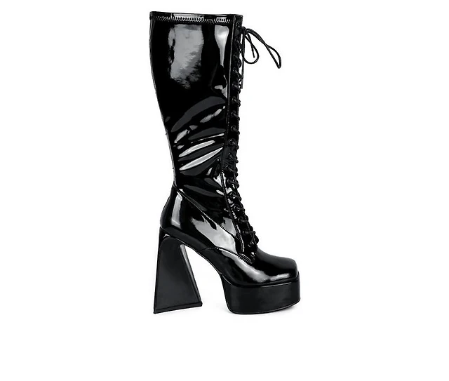 So Stunning Patent Faux Leather Under The Knee Platform Boots