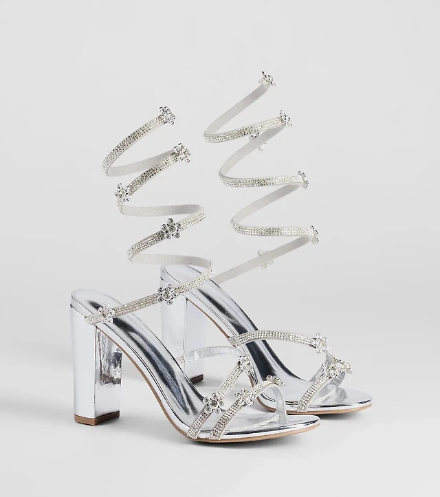 Feelin' Glam Rhinestone Spiral Strap Block Heels