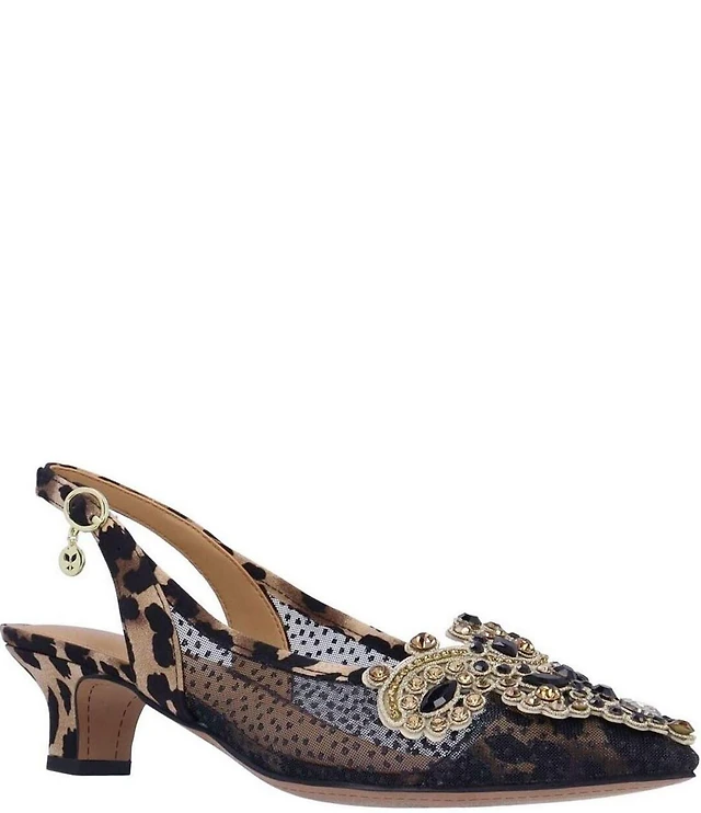 J. Renee Strovanni Leopard Print Mesh Rhinestone Ornament Slingback Pumps
