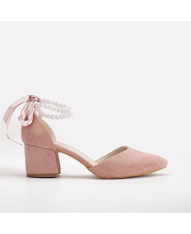 Coralee | Two Piece T-Strap Low Heel Leather Pumps