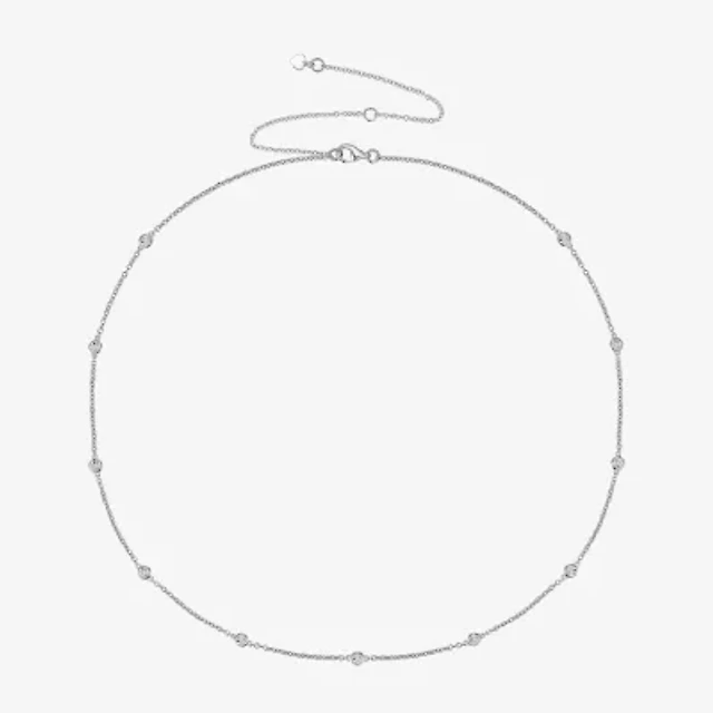 Womens 1/10 CT. T.W. Cubic Zirconia Sterling Silver Round 18 Inch Pendant Necklace
