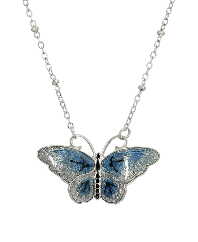 2028 Women's Silver Tone Purple and Black Enamel Butterfly Necklace