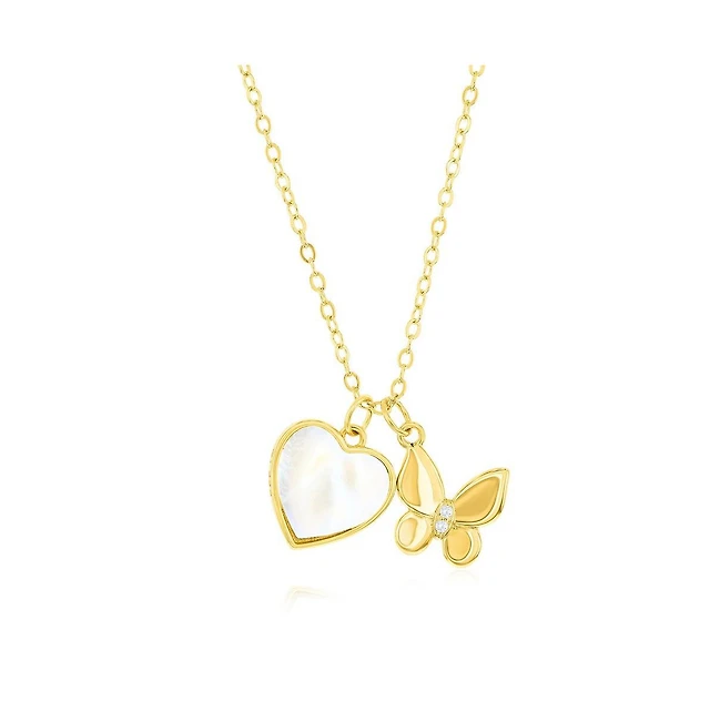 Lab Grown Gold Tone with Mother of Pearl Heart Pendant Necklace