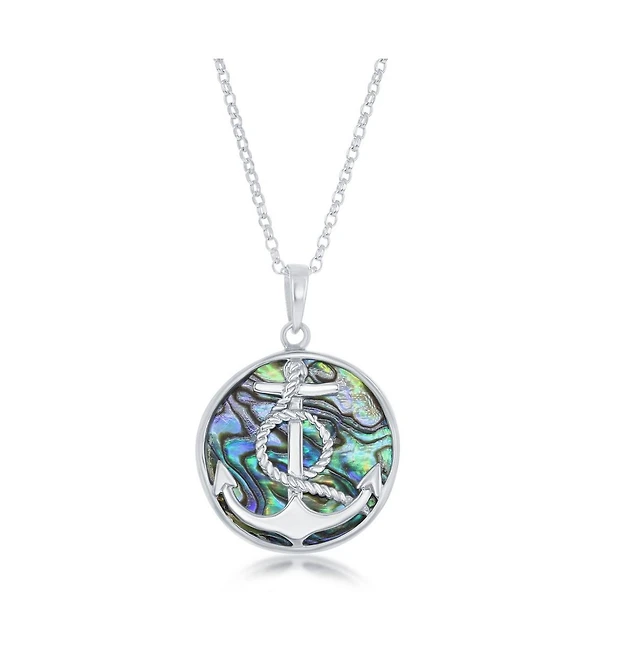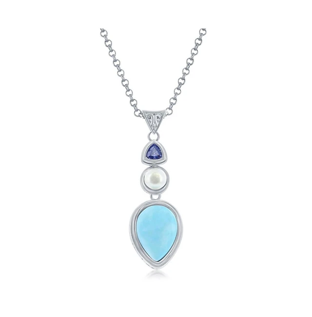 Caribbean Treasures Sterling Silver, Mop Crescent Moon & Larimar Heart Necklace - Larimar