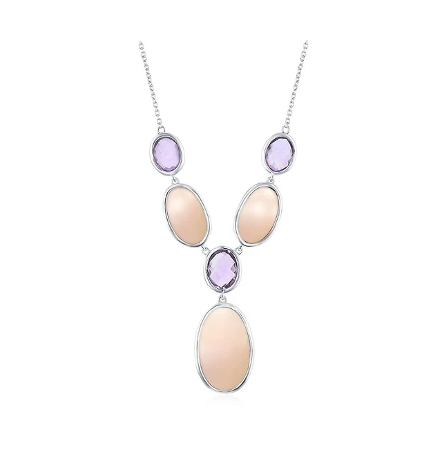Simona Sterling Silver Alternating Oval Blue Topaz and Mother of Pearl Necklace
